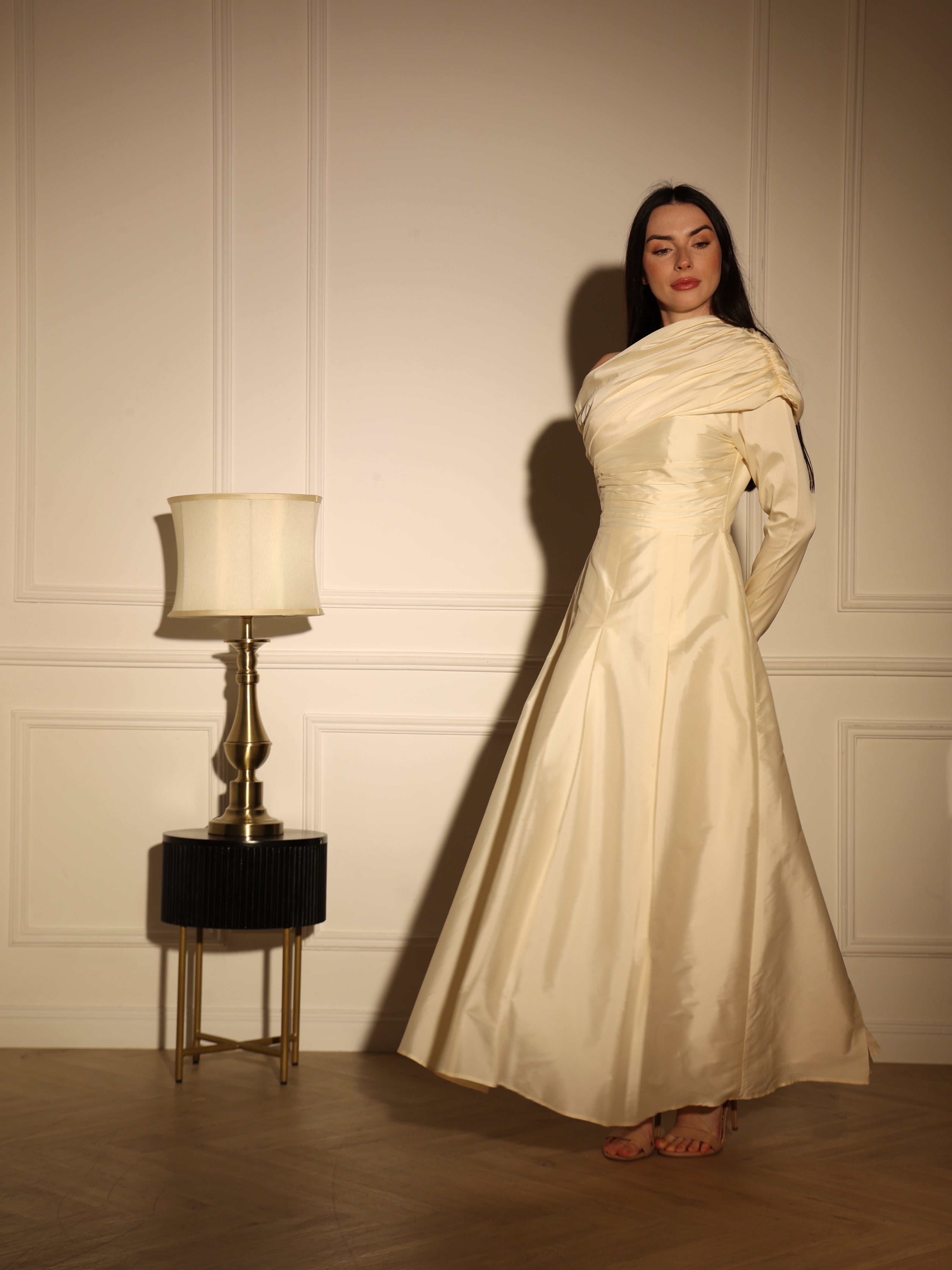 فستان بطيات بليسيه شيفون ناعم ، اوف شولدر