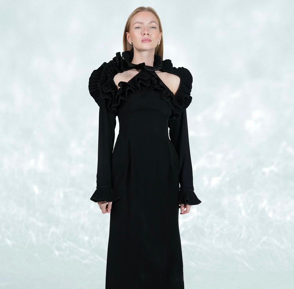 فستان بقصة اكمام منتفخة واكمام منفوشه