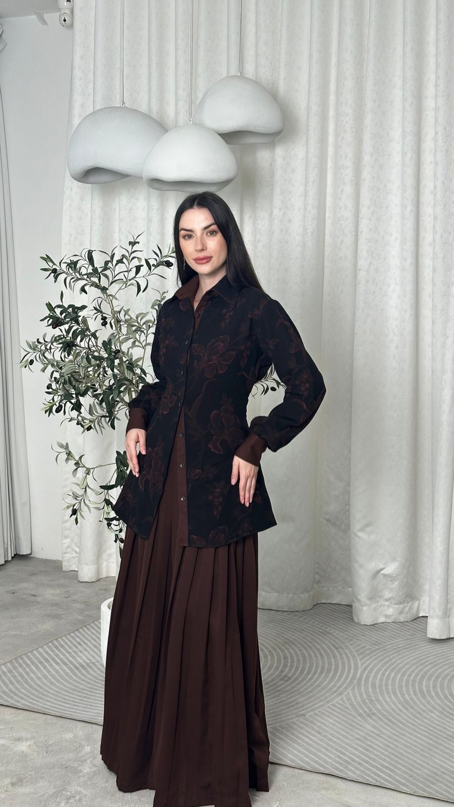قميص مكون من قطعه شيفون مبطن مع قماش كريب ناعم
