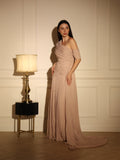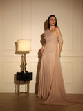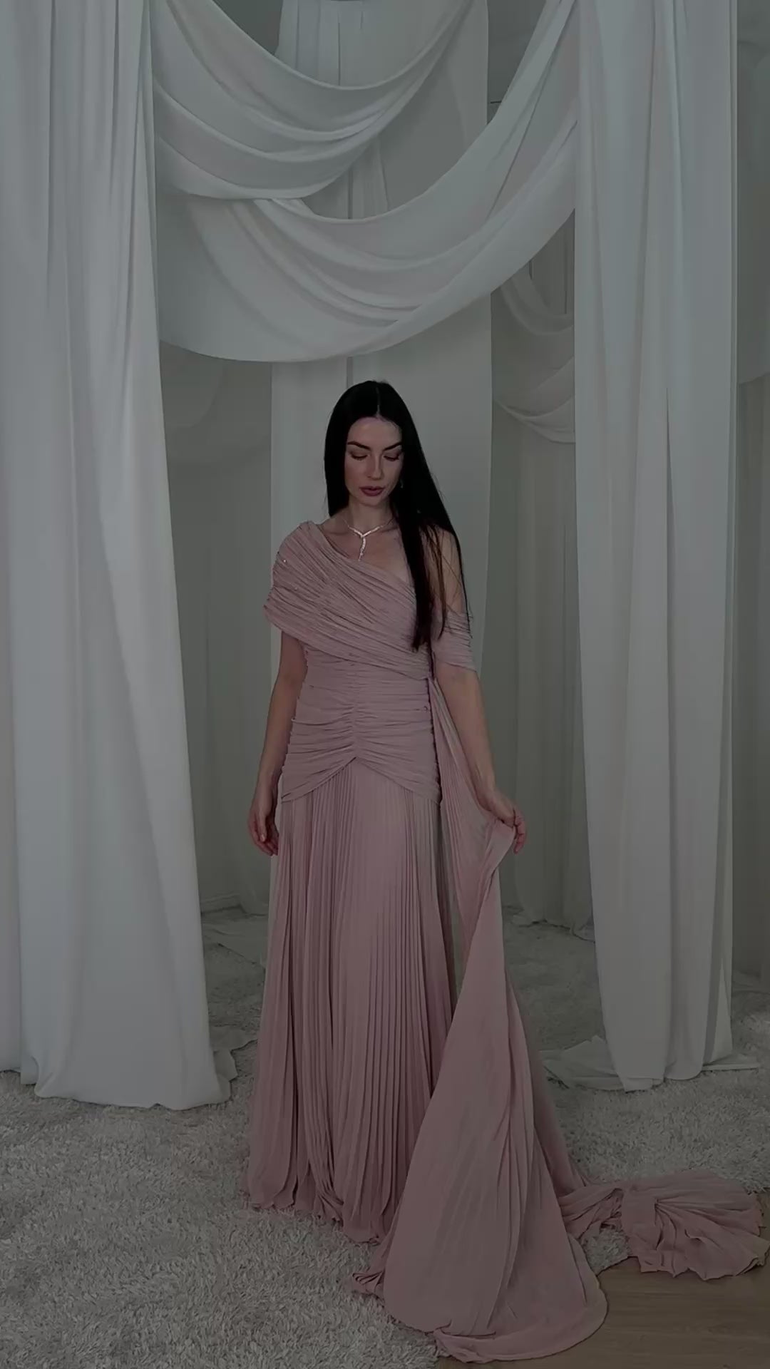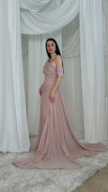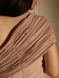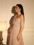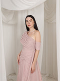 فستان بطيات بليسيه شيفون ناعم ، اوف شولدر