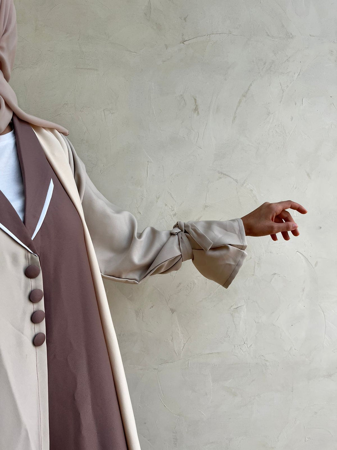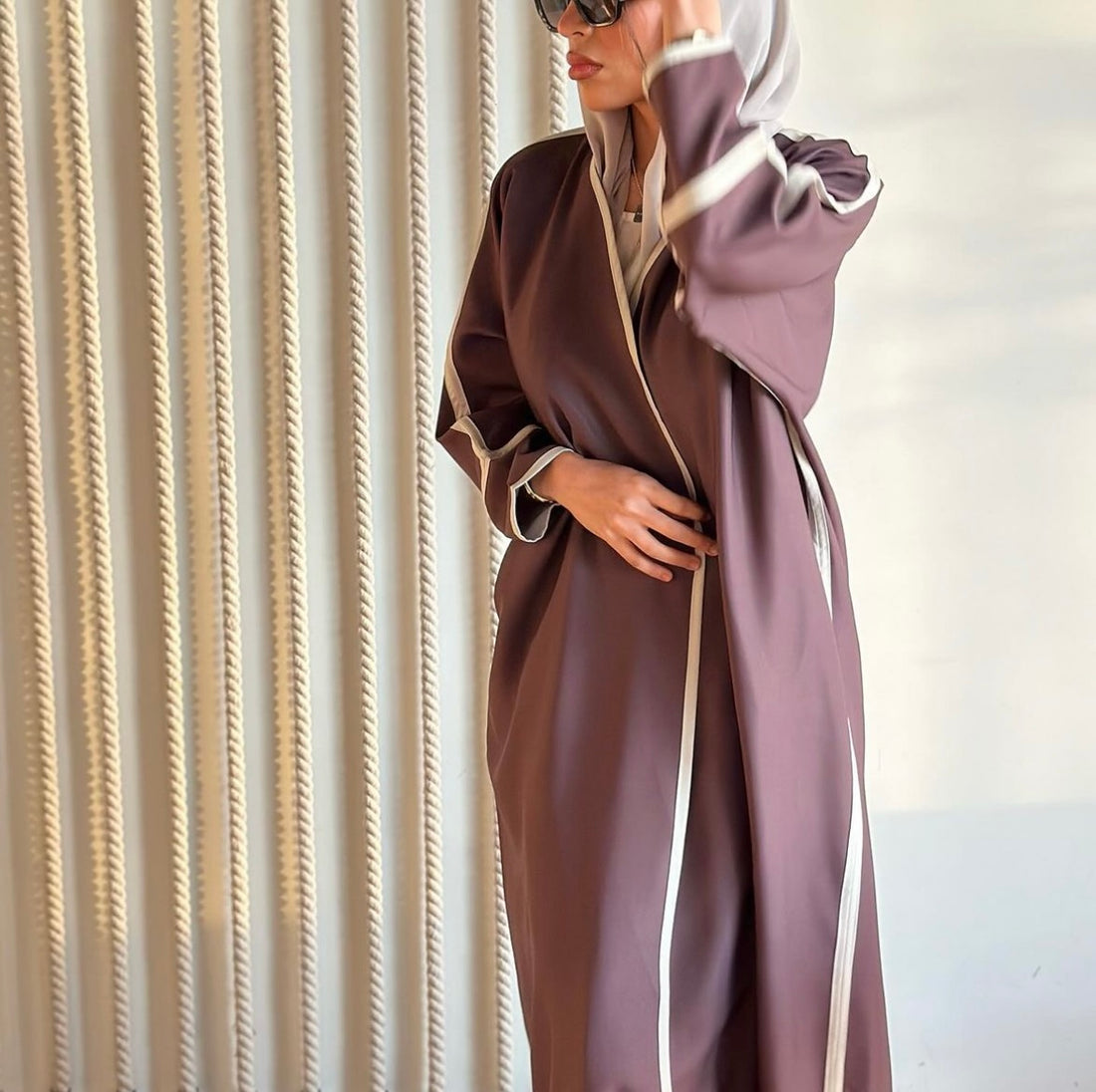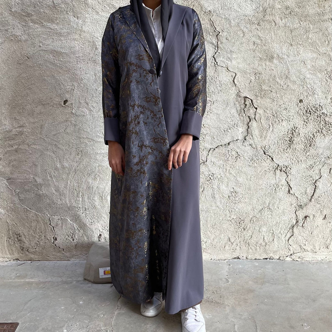 cross abaya with v-neck, patterned material on side, and plain cotton material عبايا بقصة كروس...