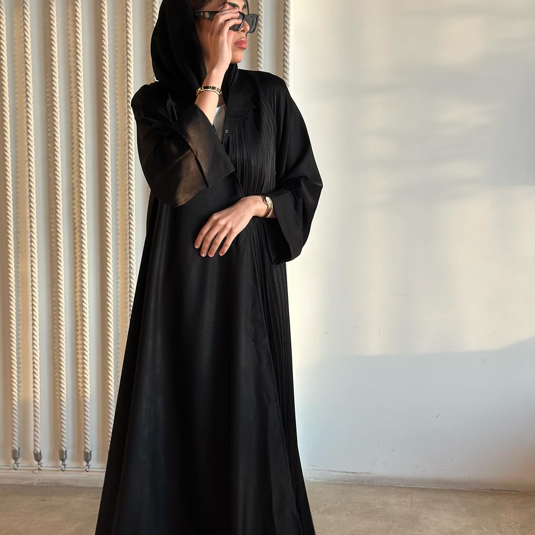 Abaya with plane side and pleated side nada marital klosh cut عبايا كلوش قماش ندى...