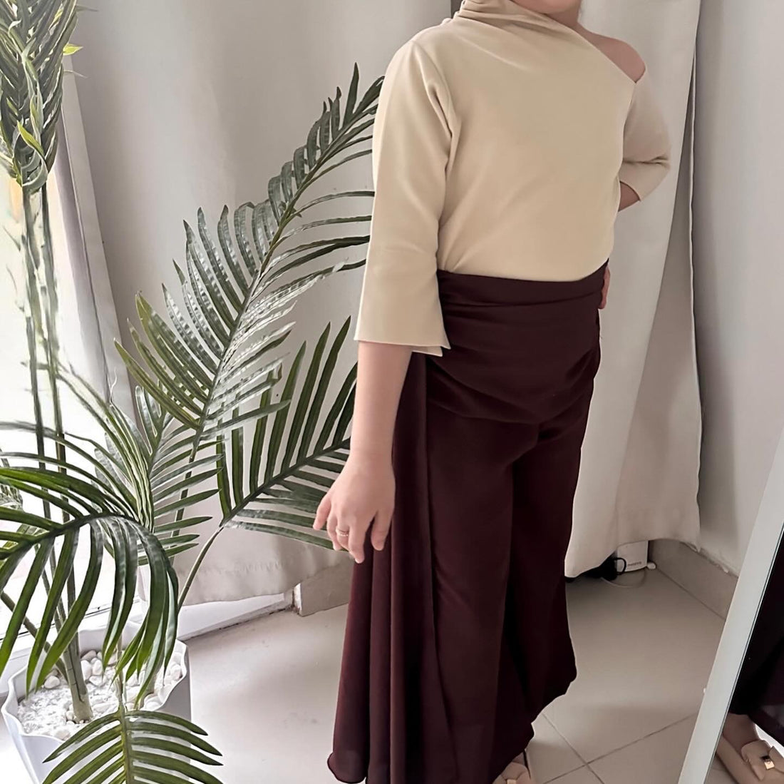 بدلة للاطفال مكونه من قميص بياقة مرتفعه من طرف واحد و بكتف نازل من طرف...