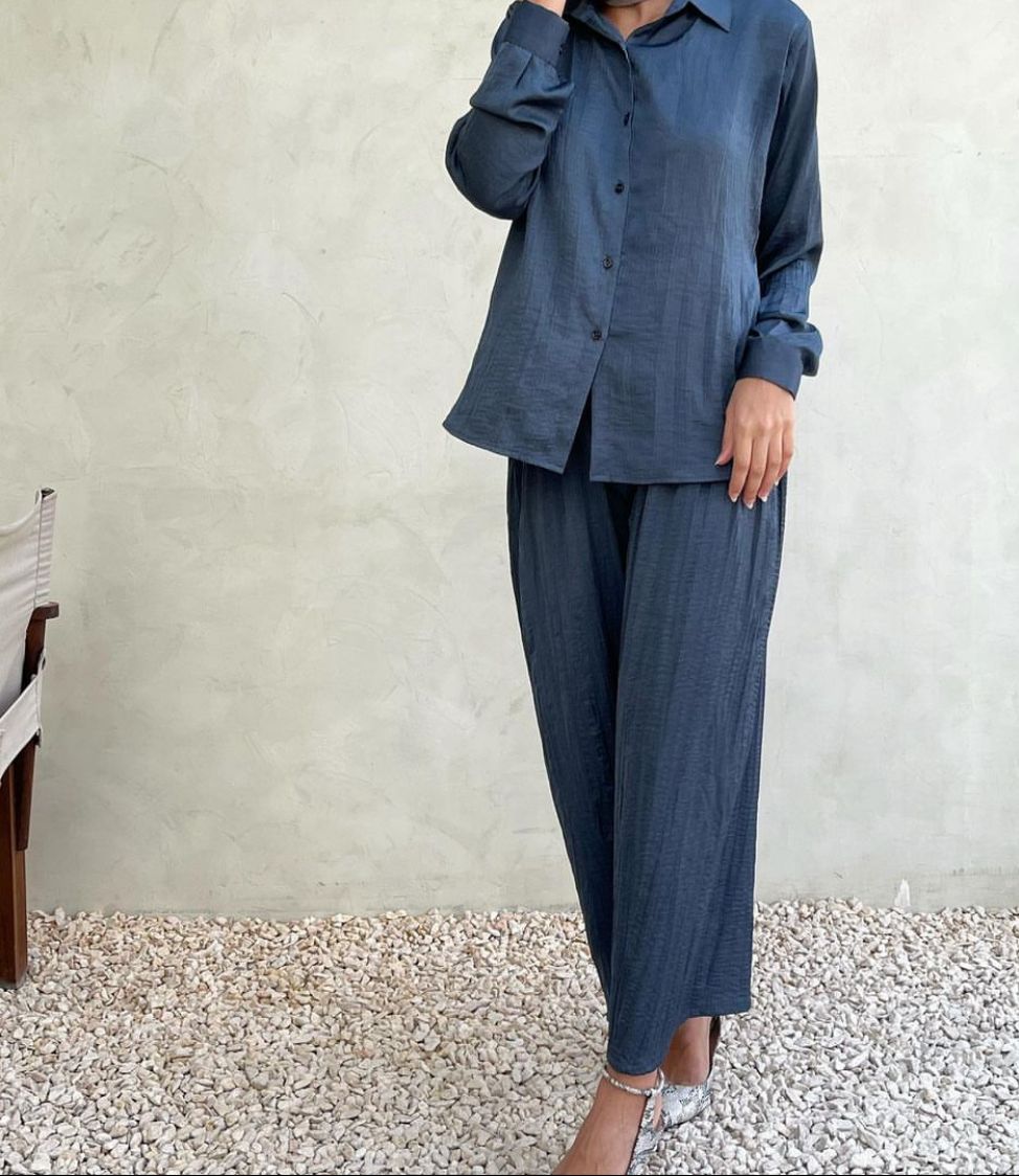 plain Bahrani cut abaya with shirt, scarf skirt, and pants organza and washed silk material