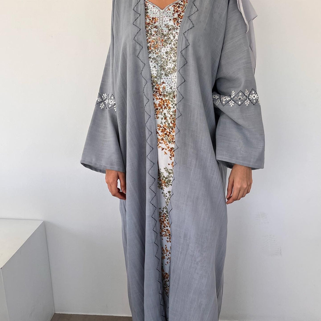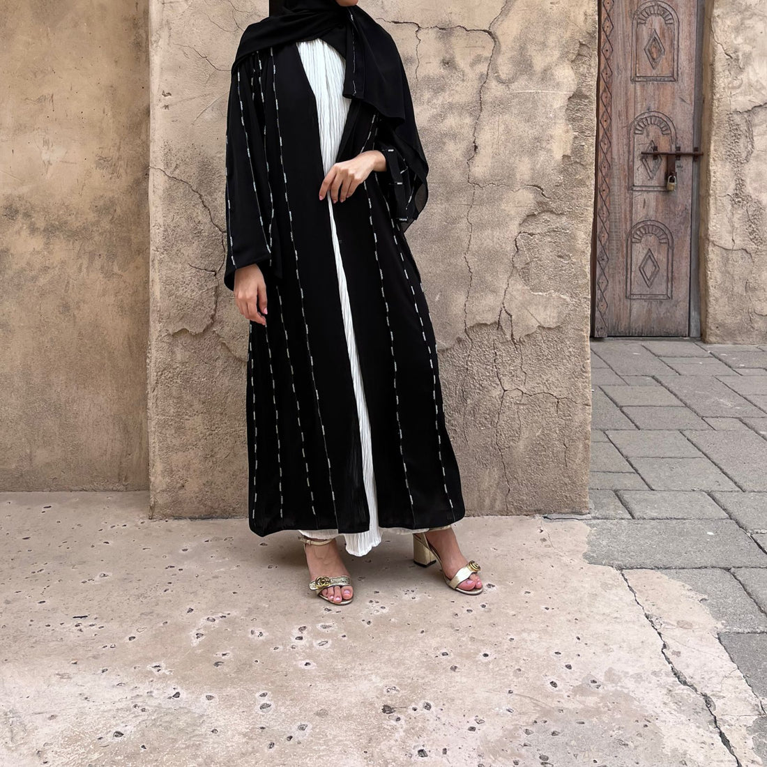 Bisht abaya with embroidery Arabic mosaic on sleeves and abaya front line along its length