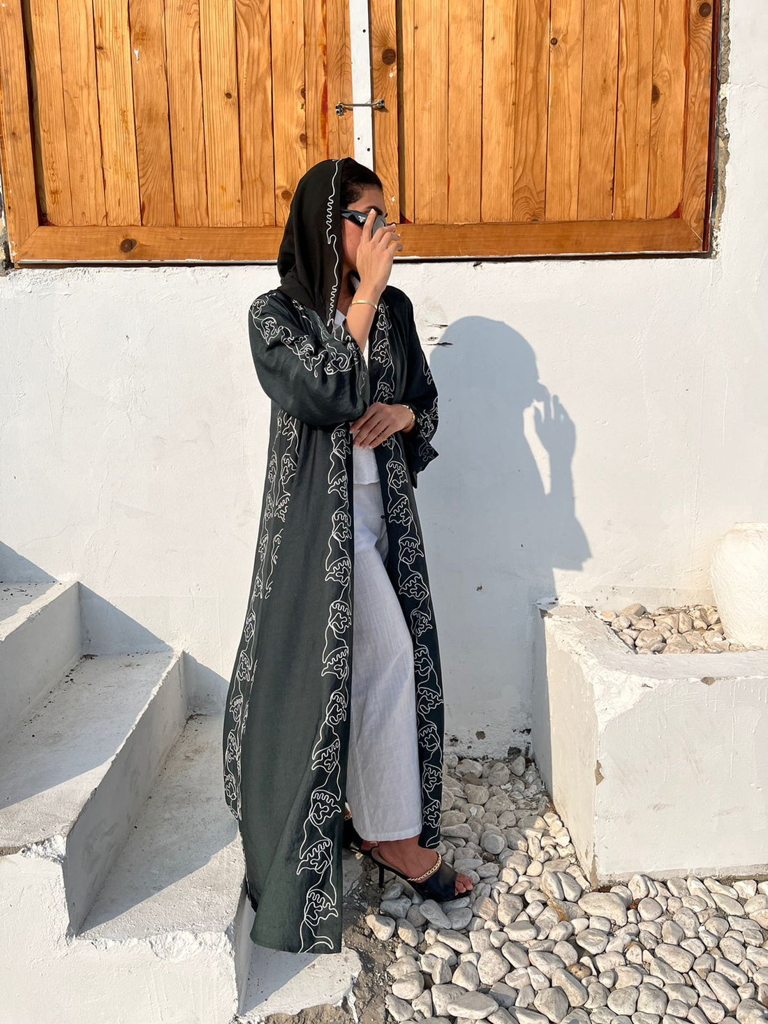 straight cut abaya with embroidery vine leaves design in the front line of the abaya...