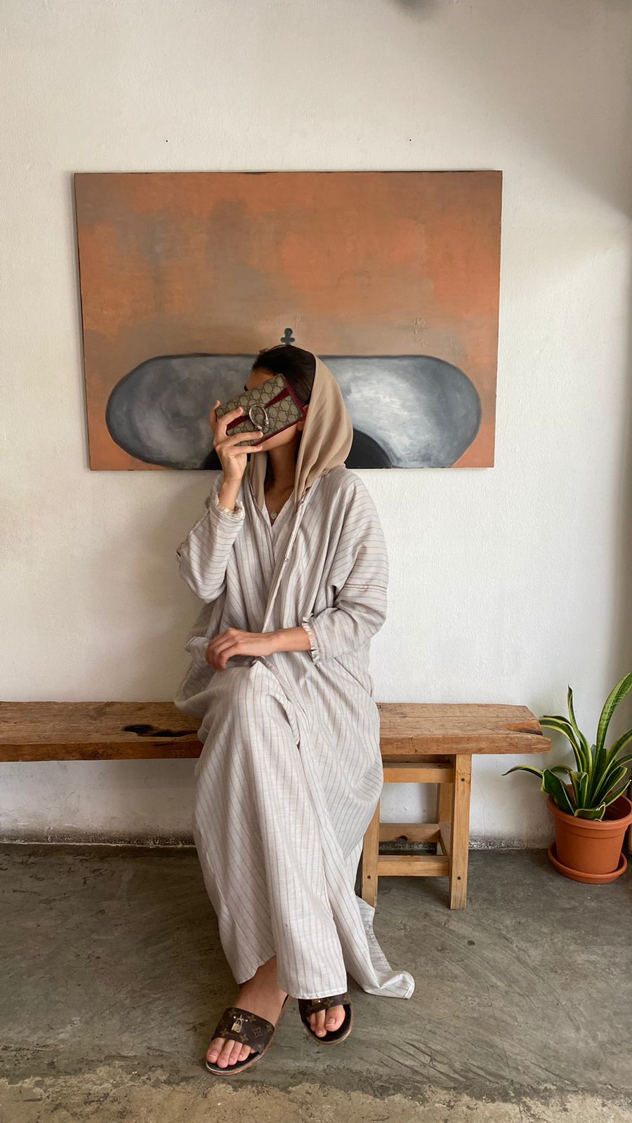 side cut abaya with v doubbeld neck black and white design indian silk material
