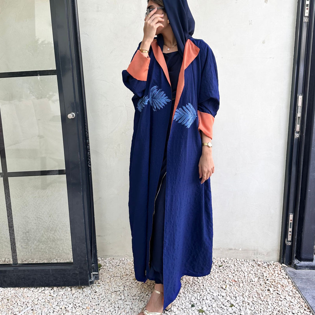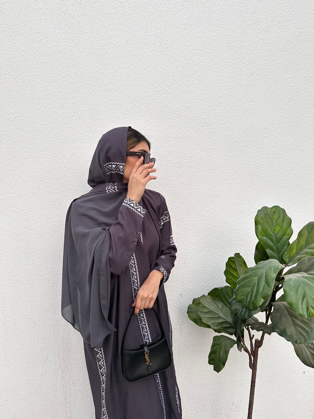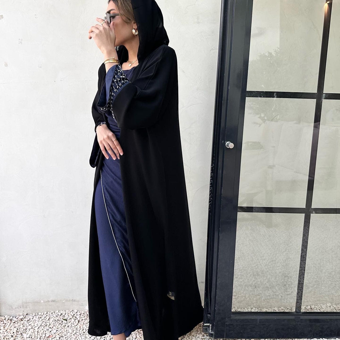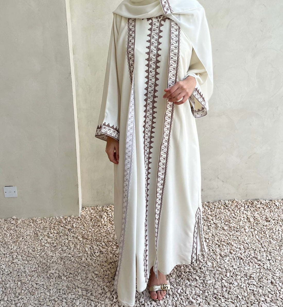 straight abaya cut with inner dress embroidery with Islamic patterns crepe material