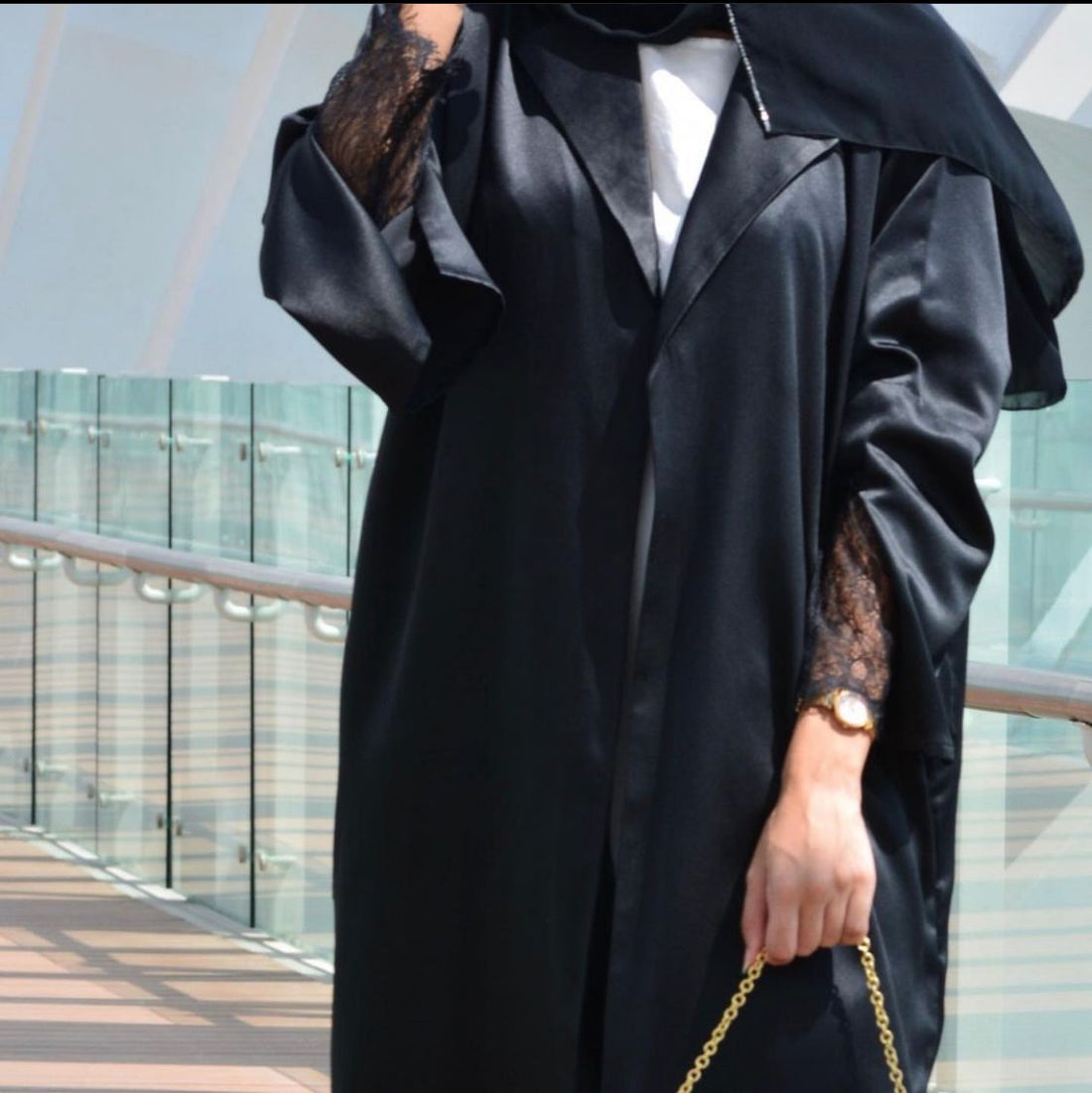 straight cut abaya Korean satin with chiffon material in the sleeve