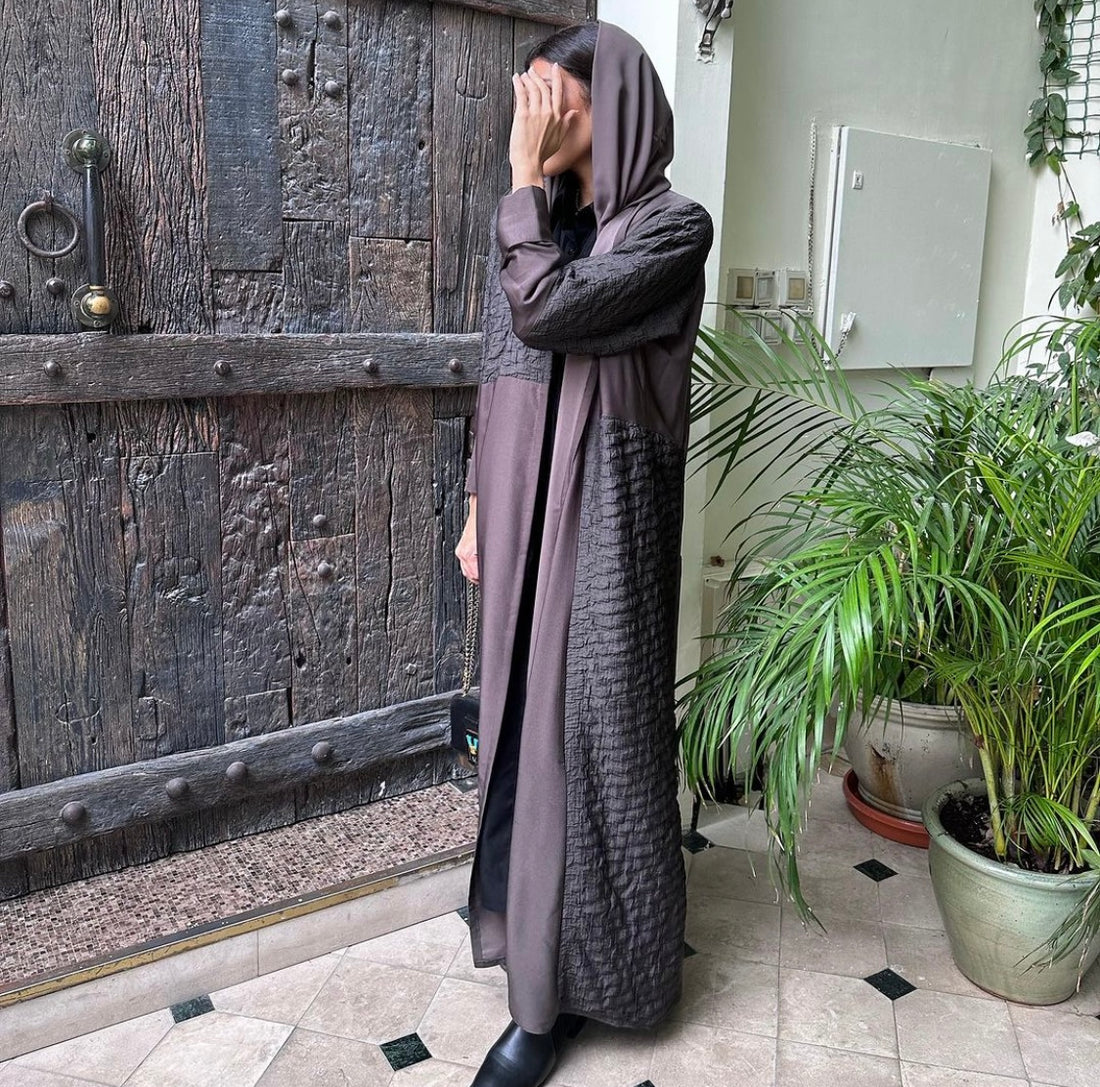 Bisht abaya soft creep material with pleated material at the back of the abaya