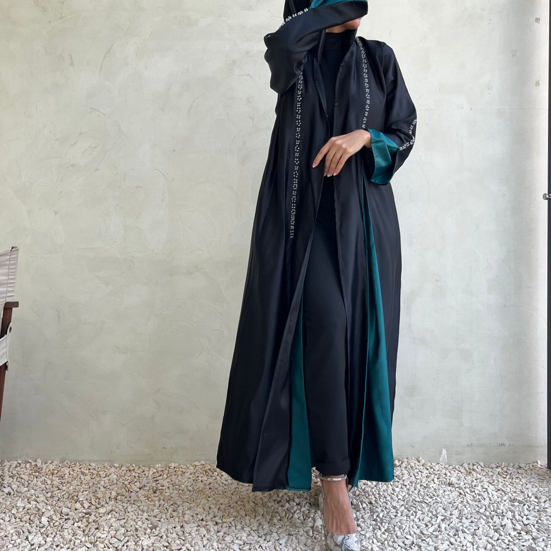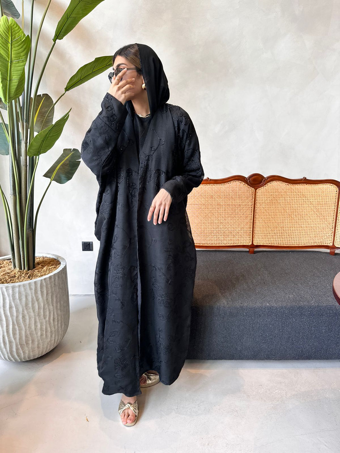 Bahrani taffeta abaya with embroidery work on sleeves and outlines