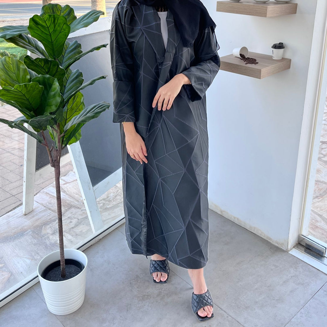 cross-cut abaya, with two materials plain and jacquard leaves material