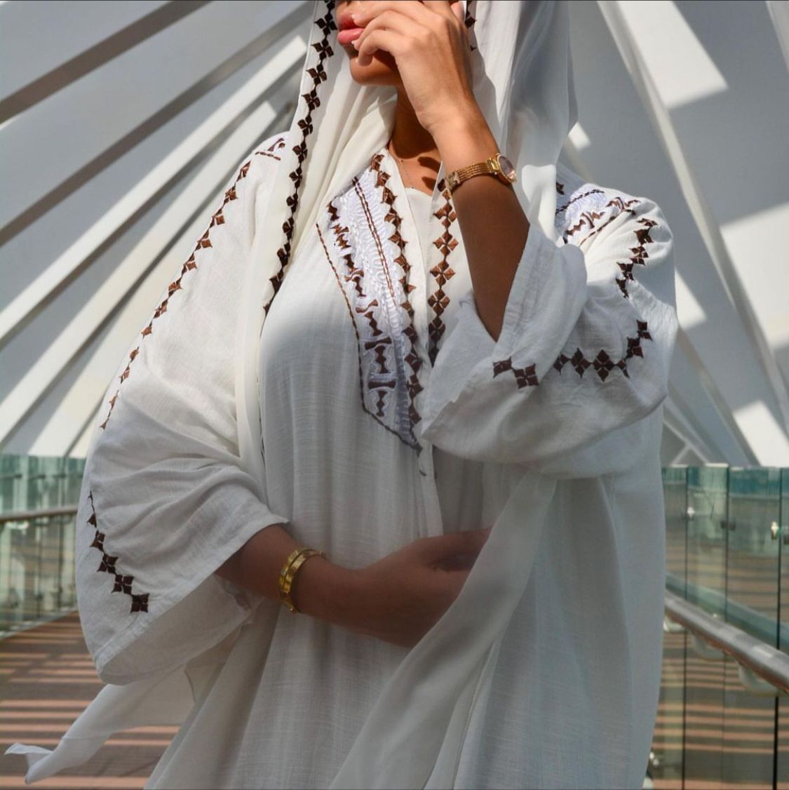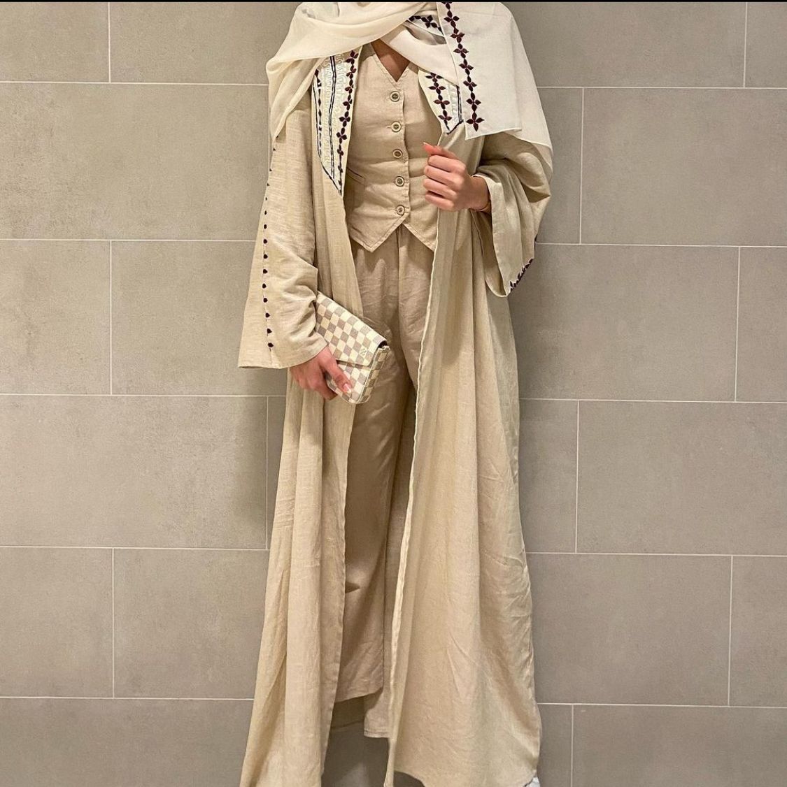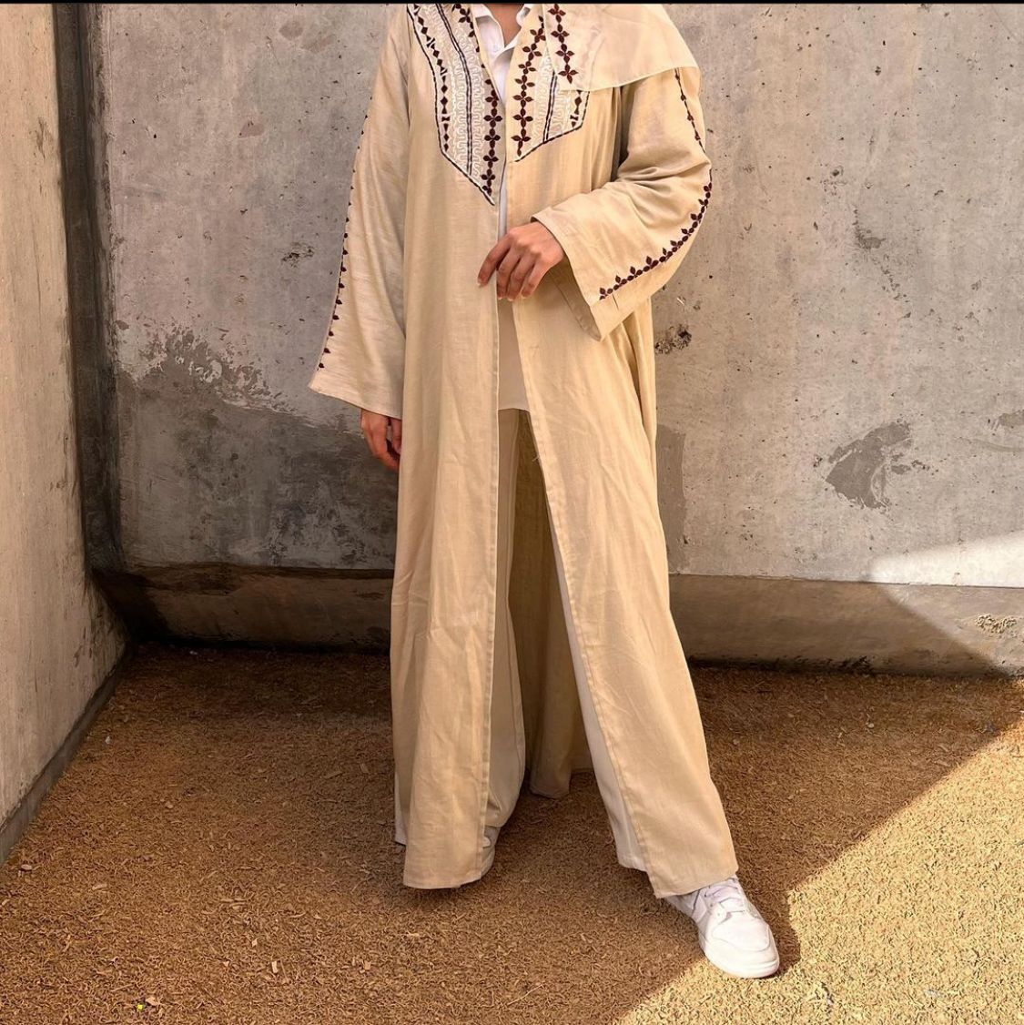 عبايا قصة بحرنيه بشت مطرزه القماش لنن متوفر منها جميع الالوان