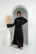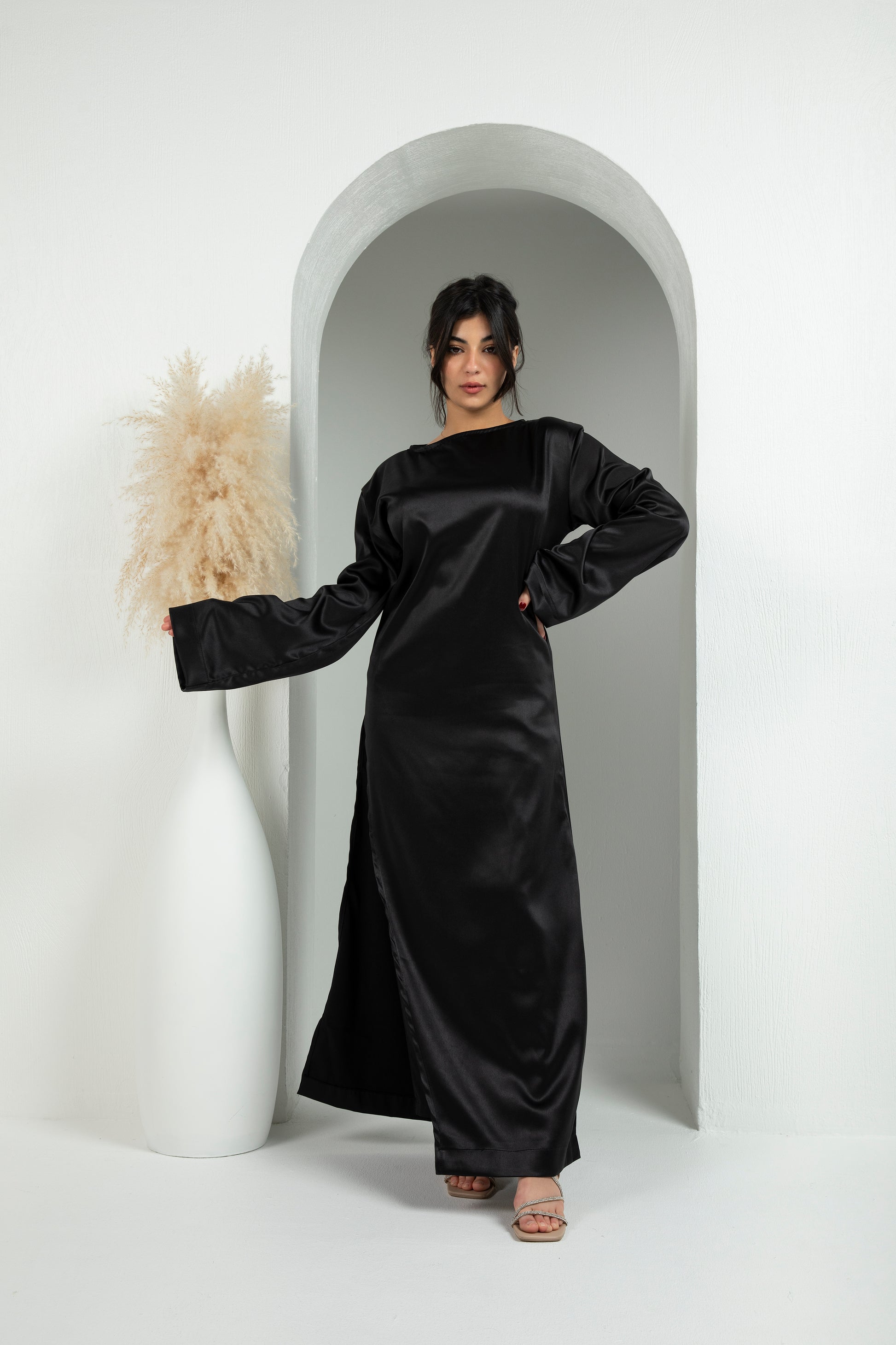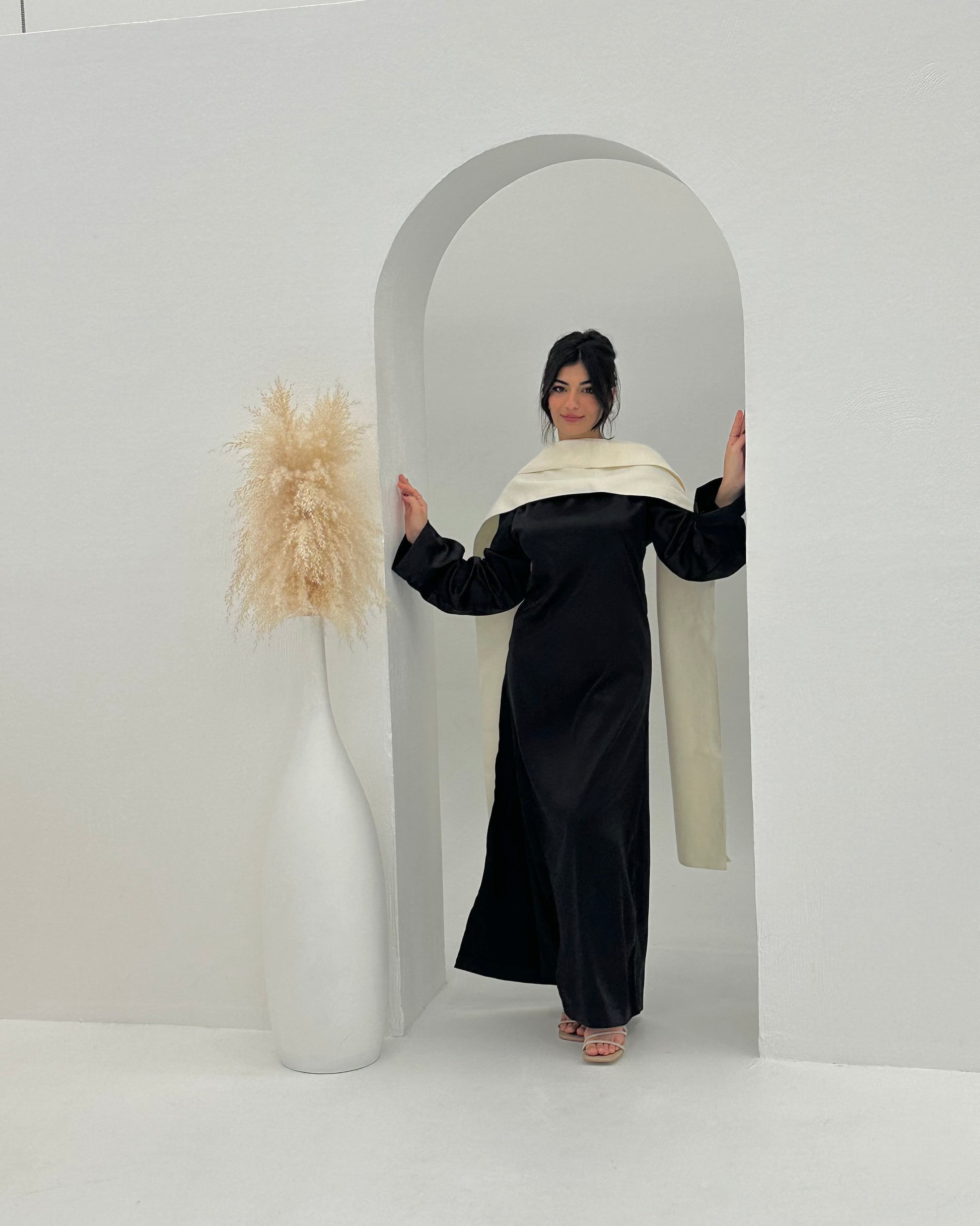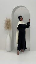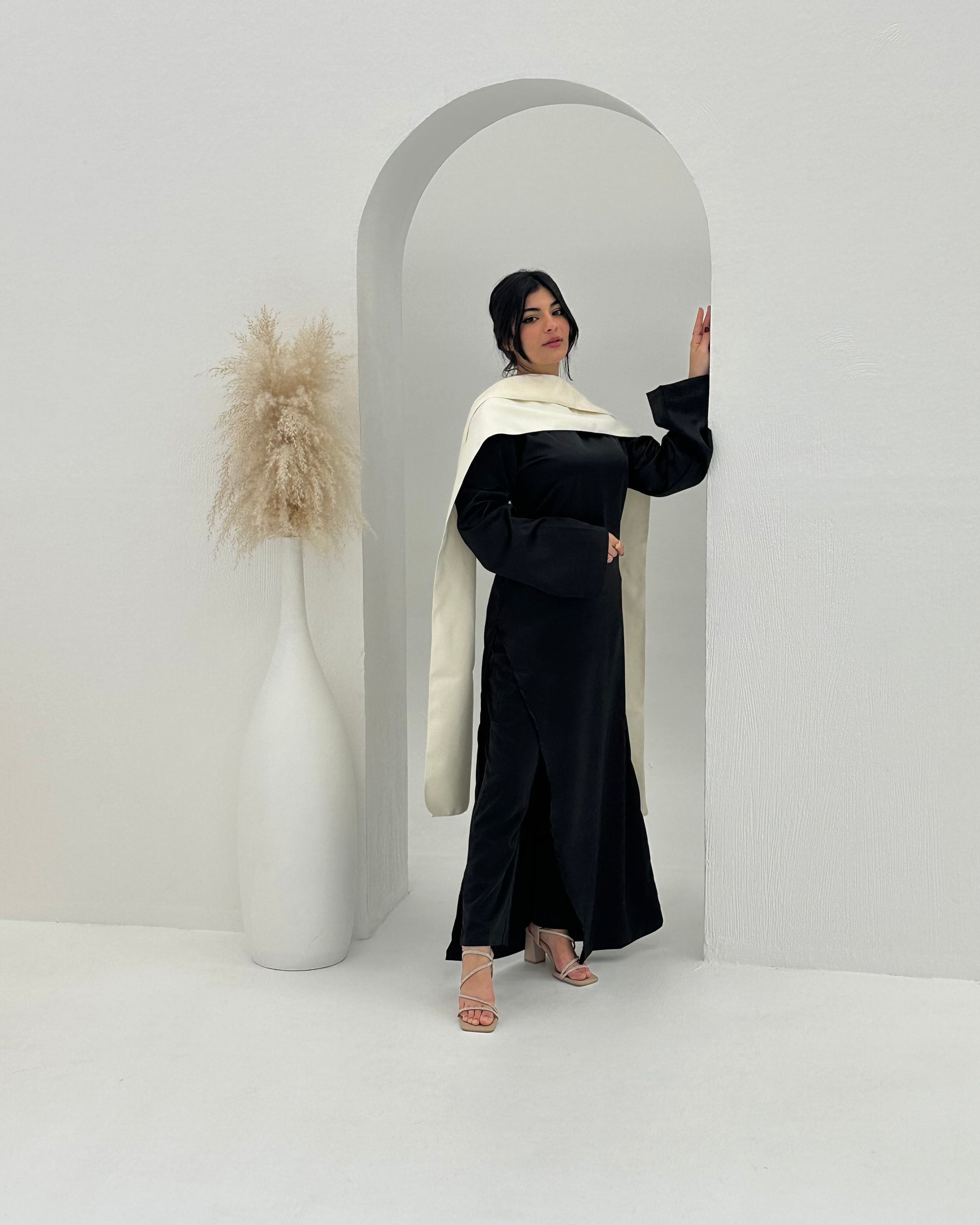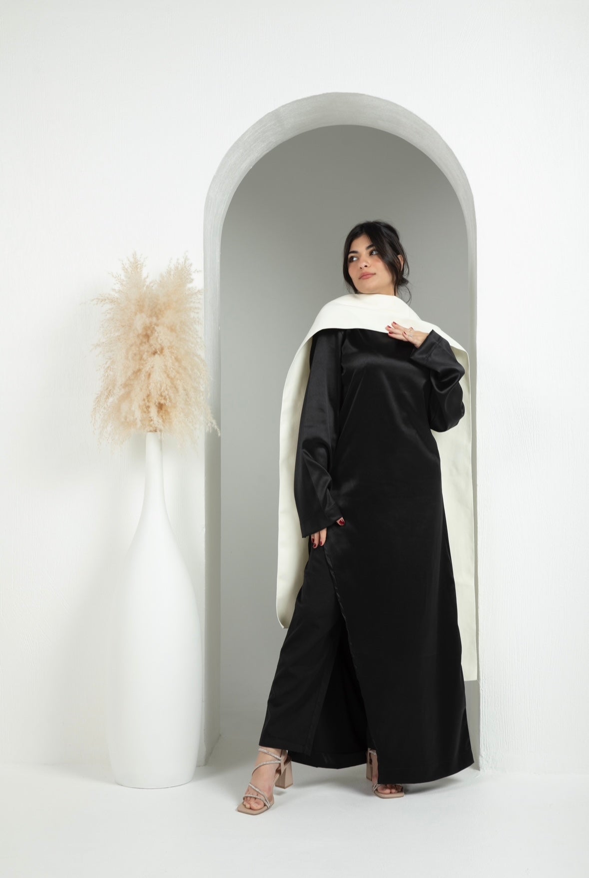 فستان بتصميم قميص بفتحة جانبية مع بنطال رسمي واسع الساق (قماش حرير كوري ) مع شال شتوي