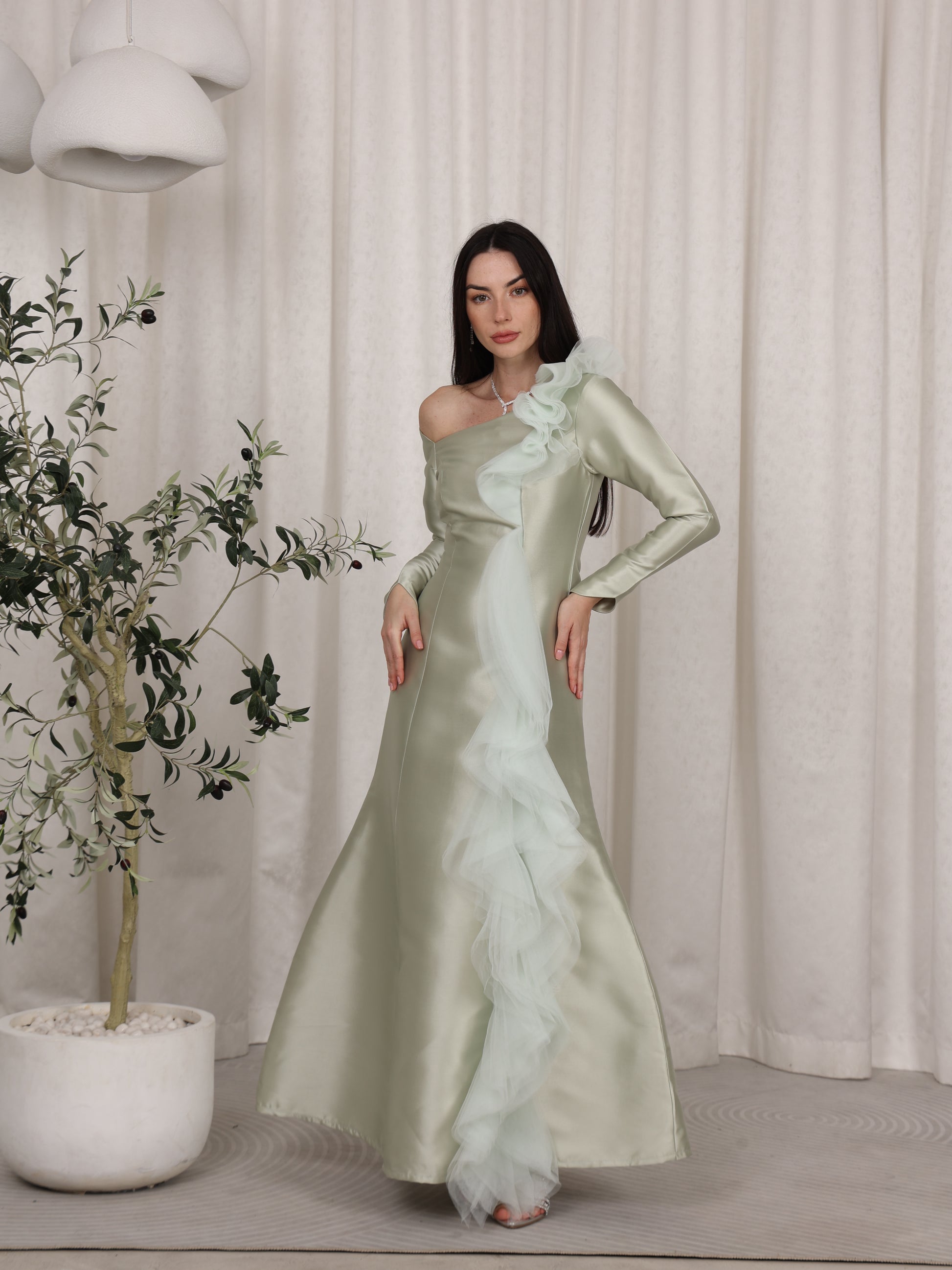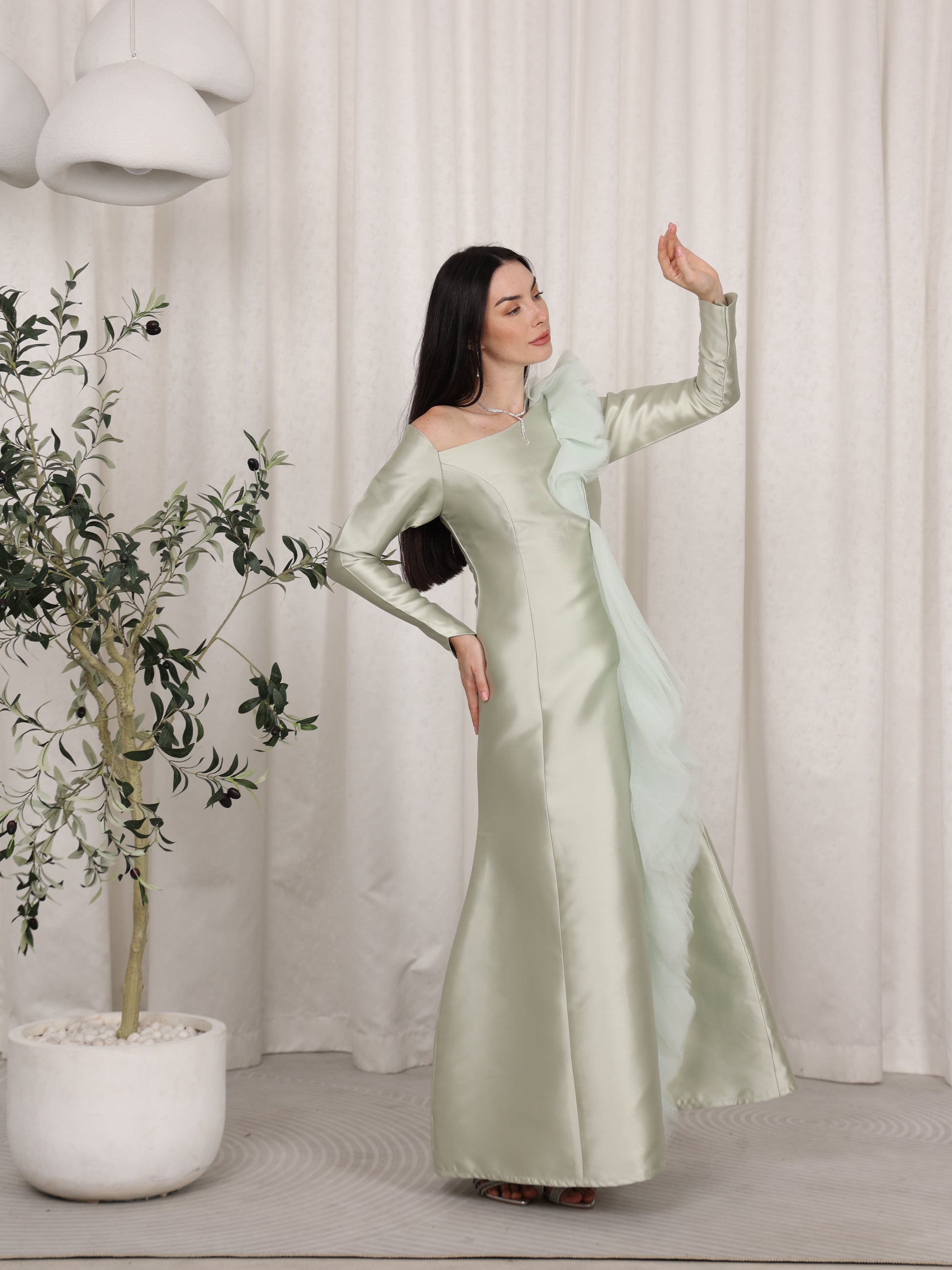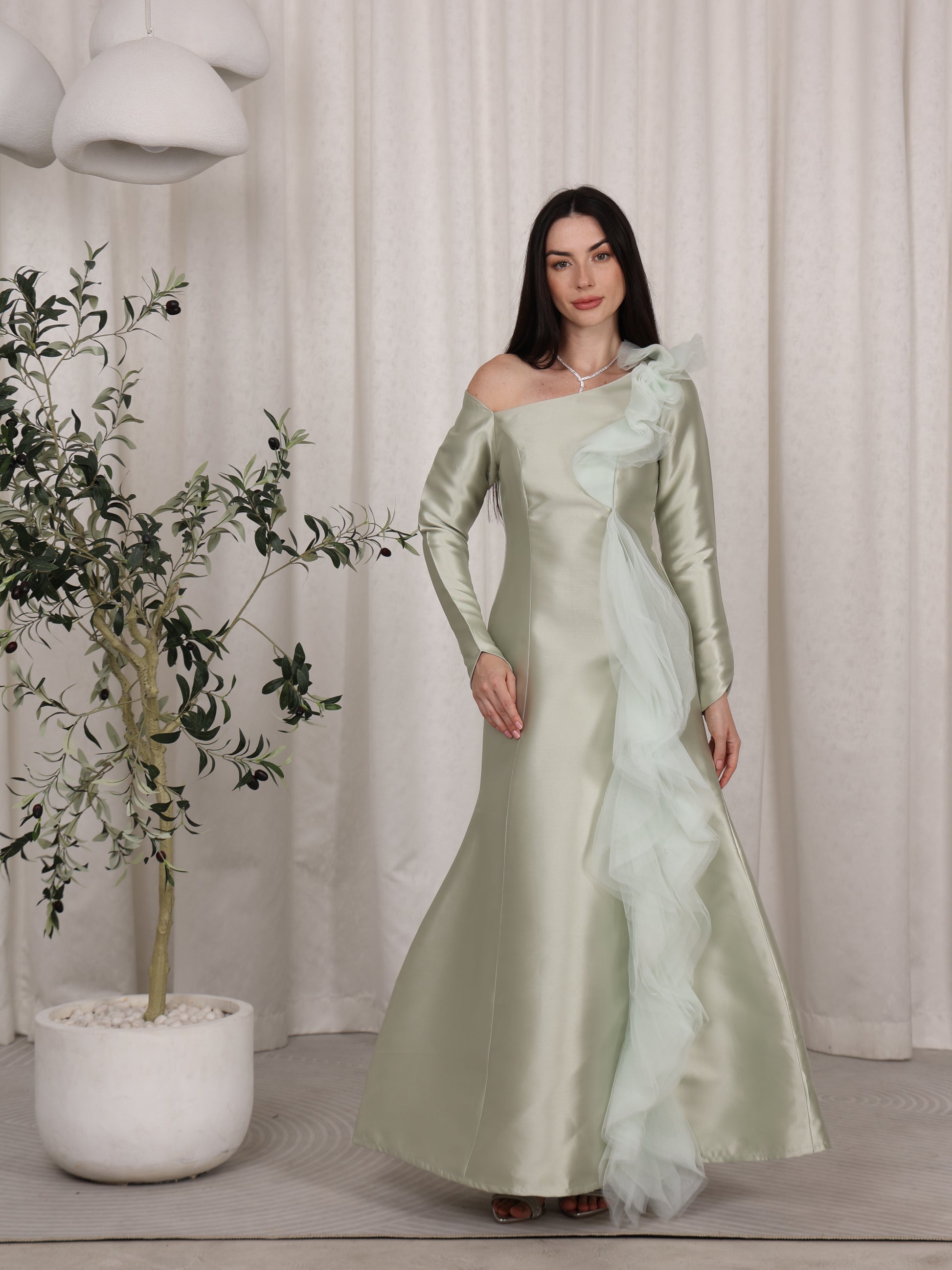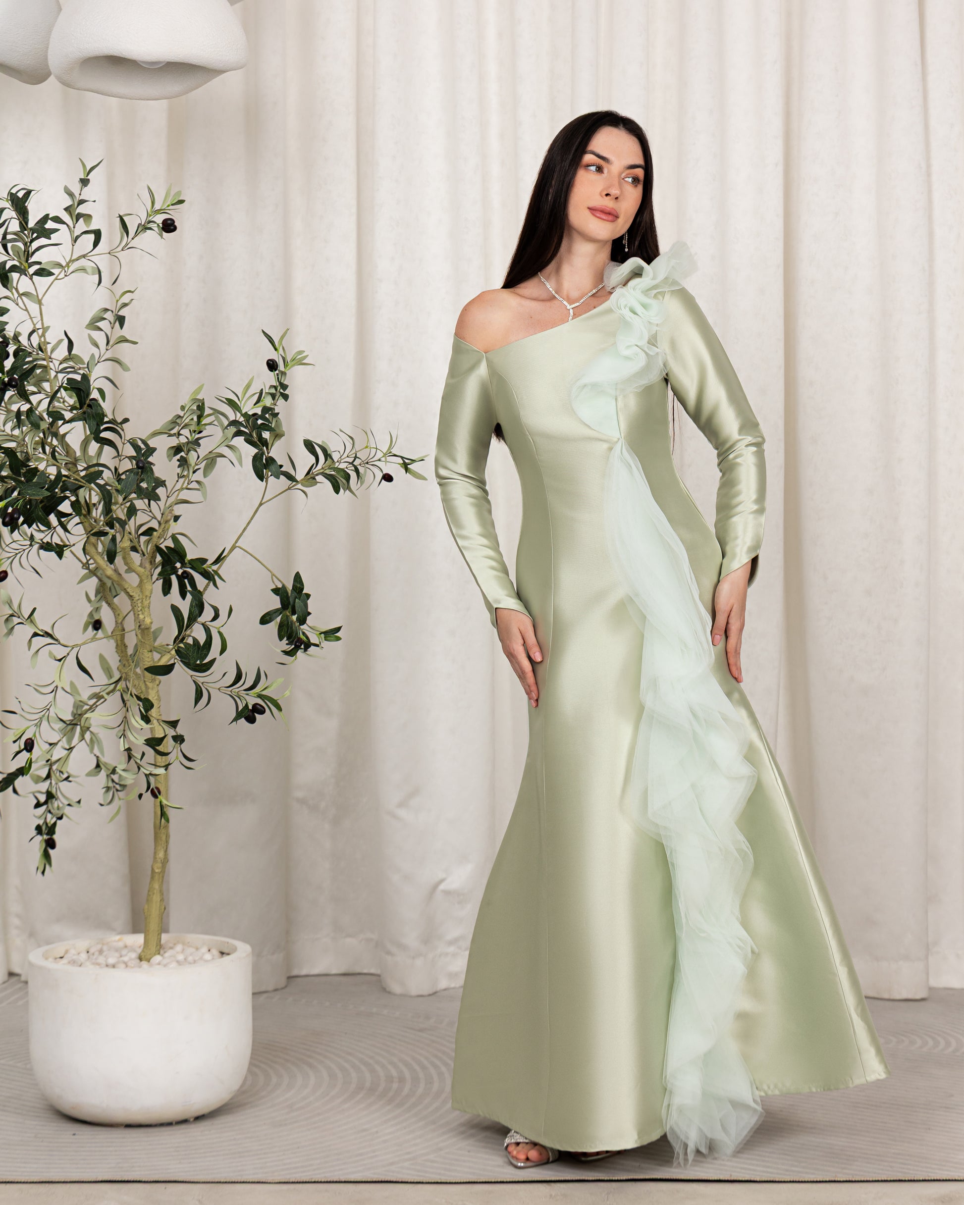 باكمام طويله وكتف مفتوح mermaid فستان بقصة