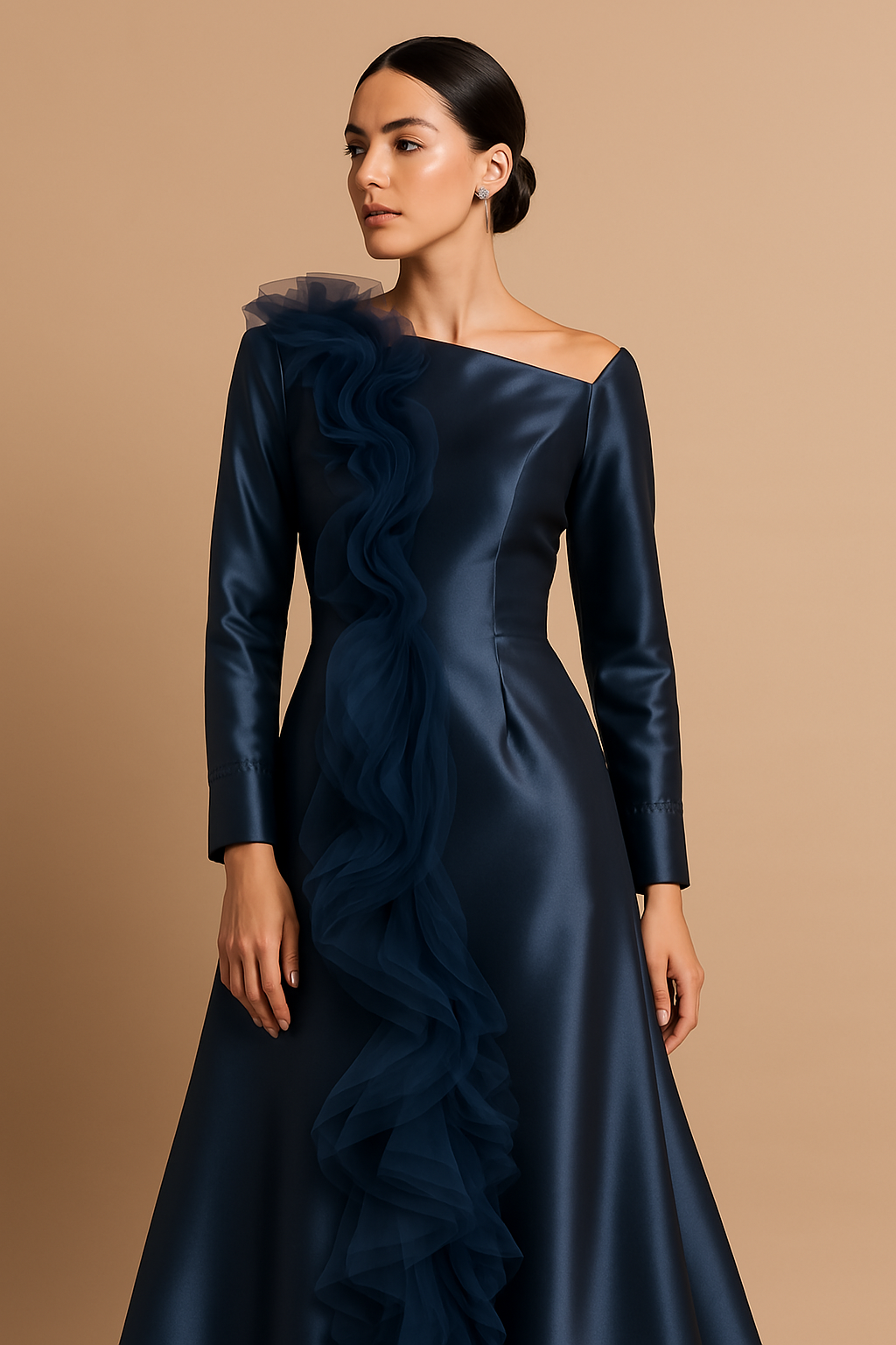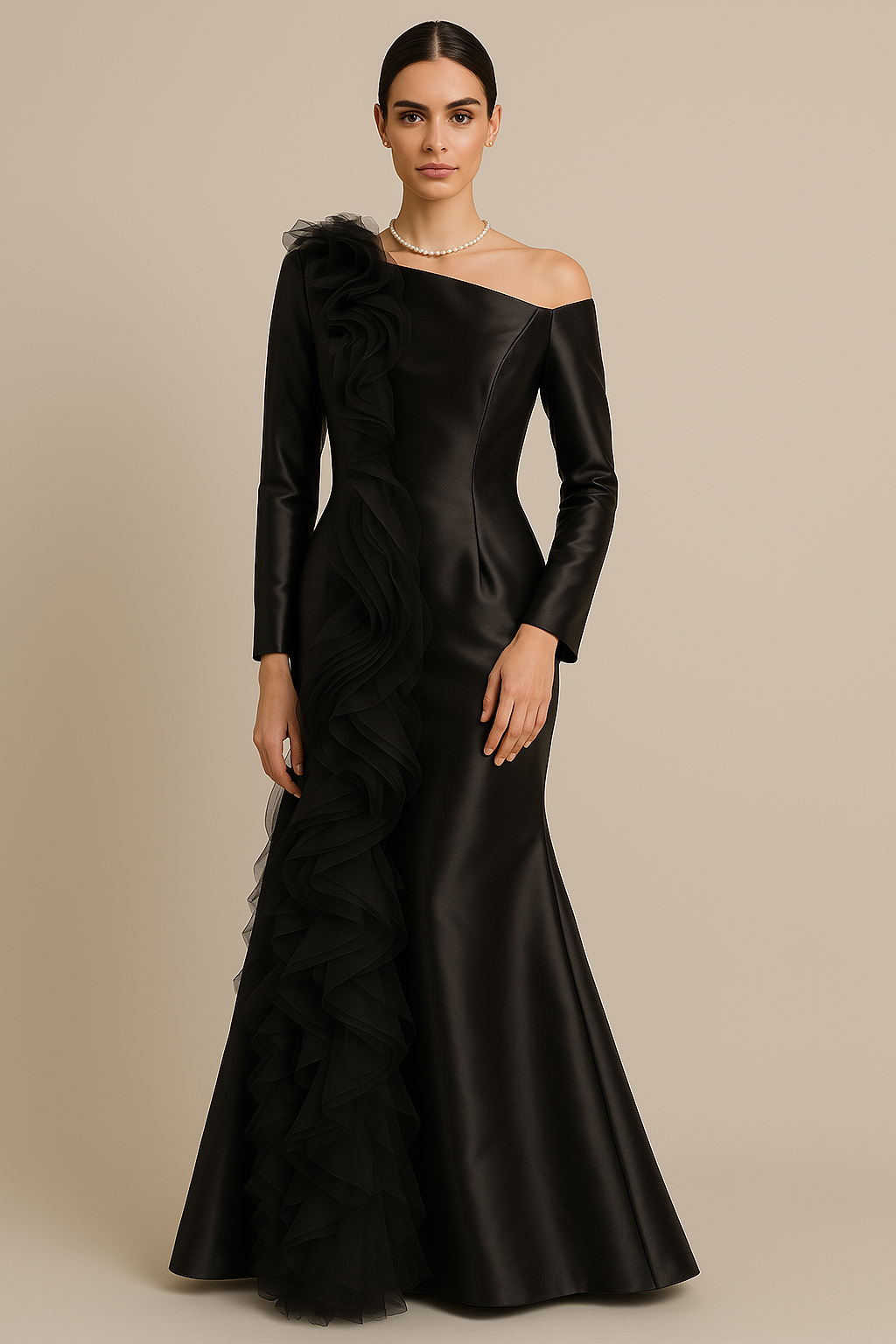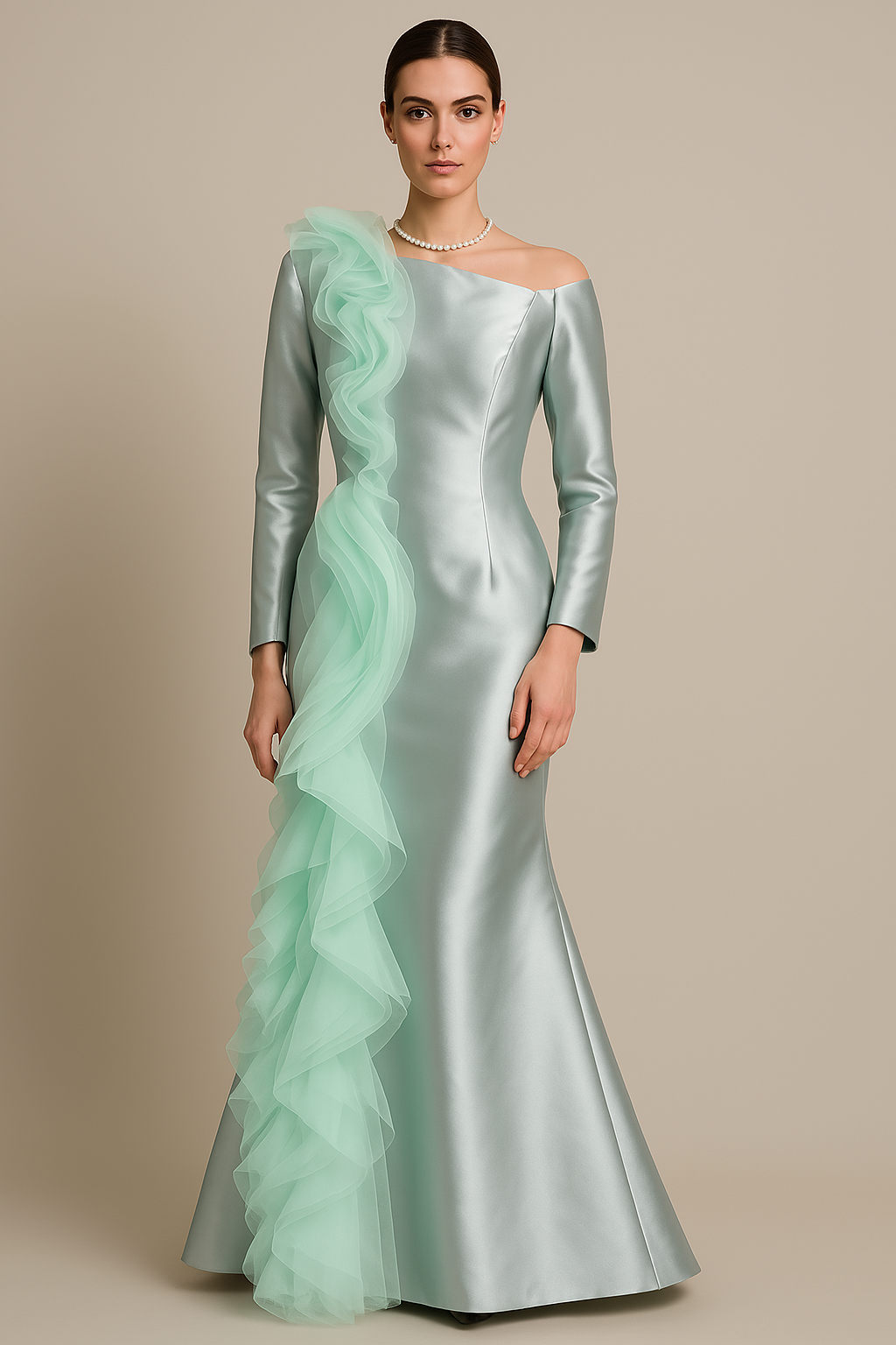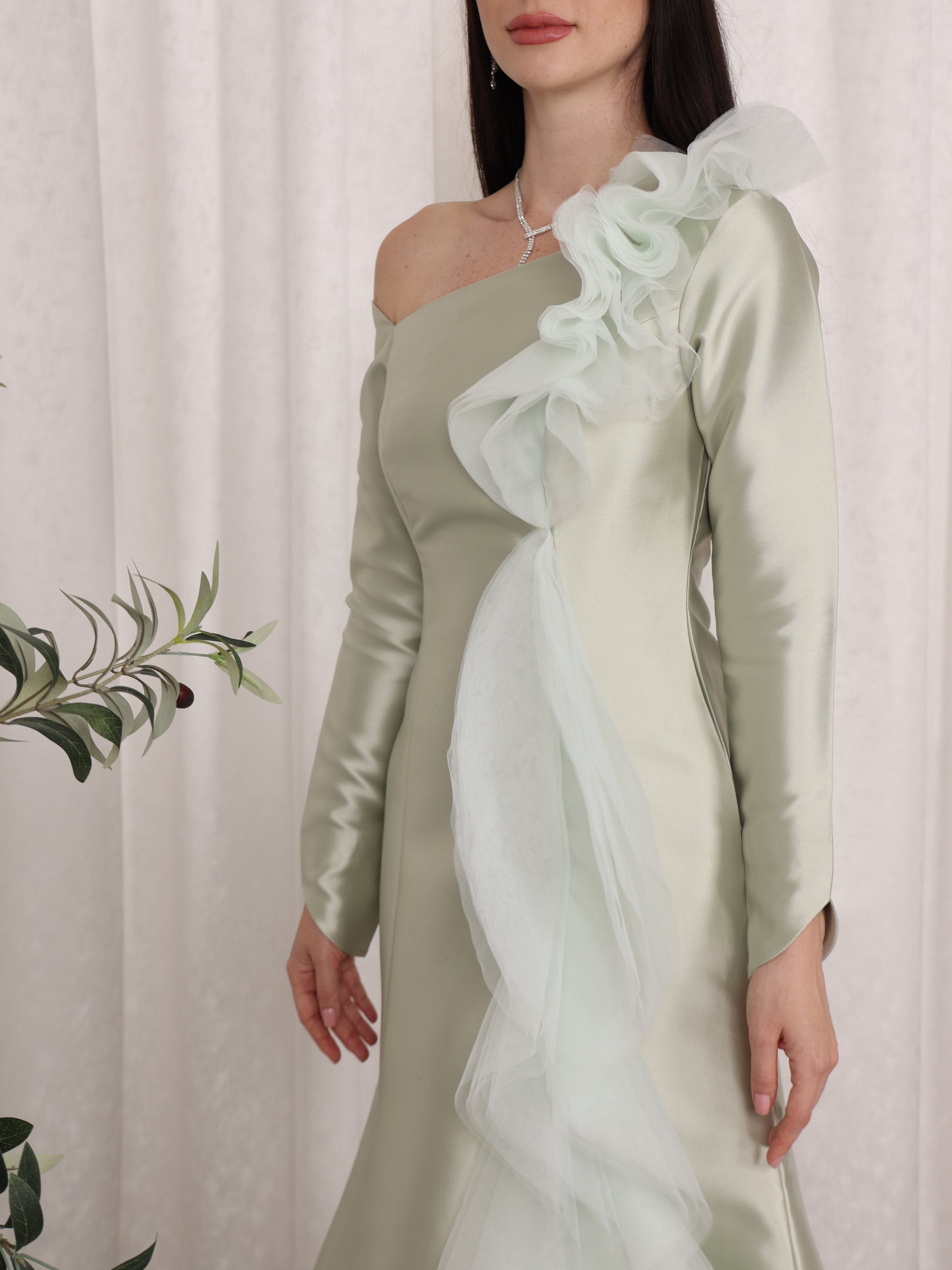 باكمام طويله وكتف مفتوح mermaid فستان بقصة