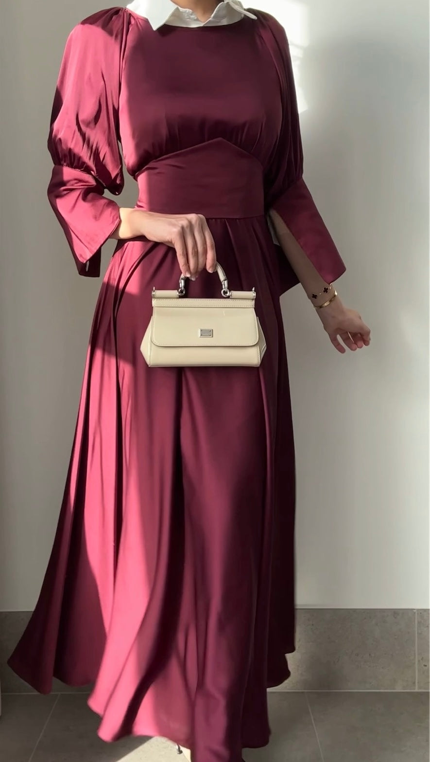 فستان كلوش خفيف بكسرات أمامية وأكمام فرنسية