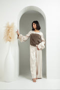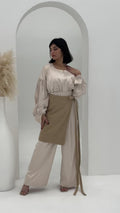 بدلة من قميص وبنطلون مرتفع الخصر مع سكارف شتوي
