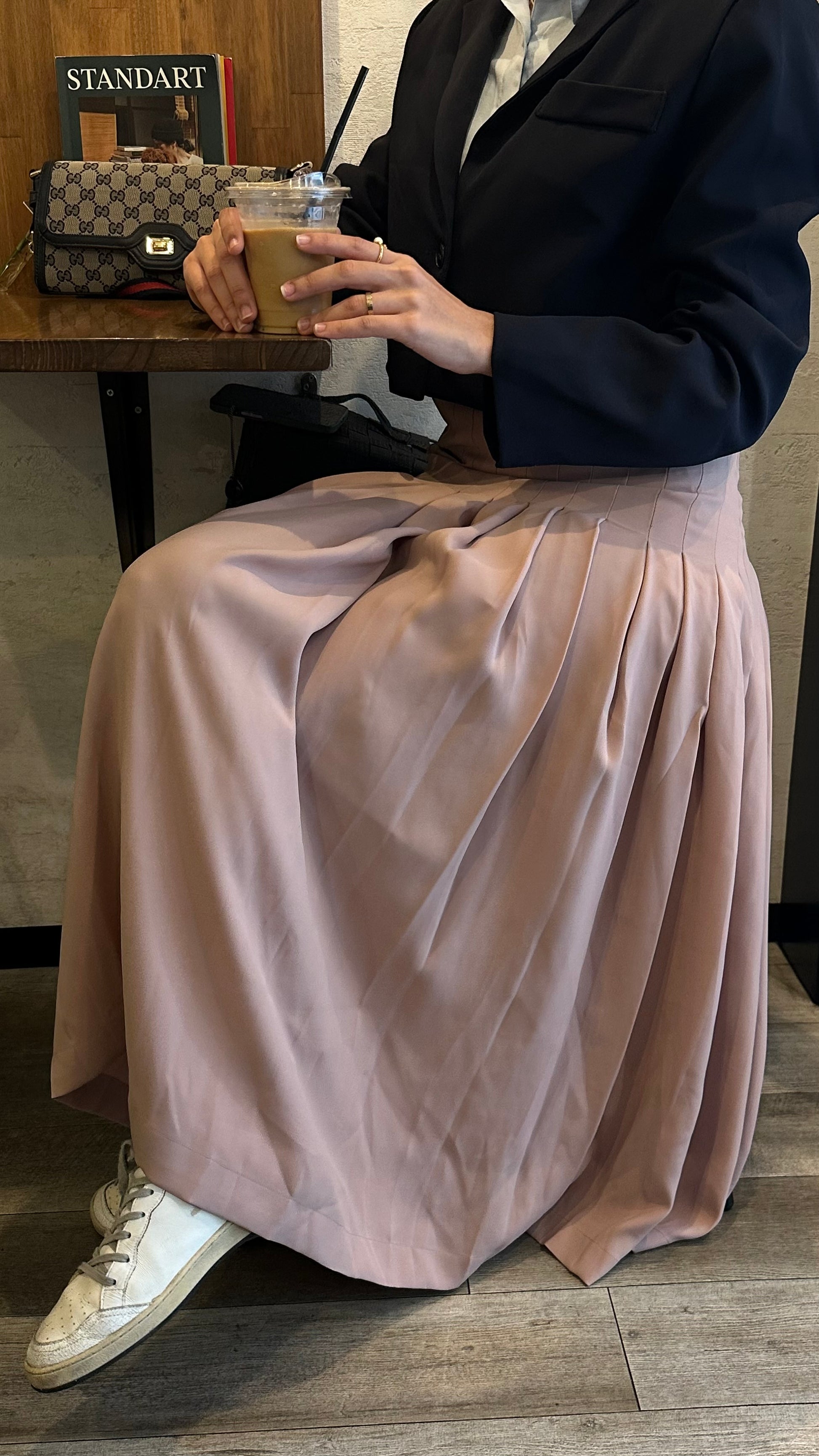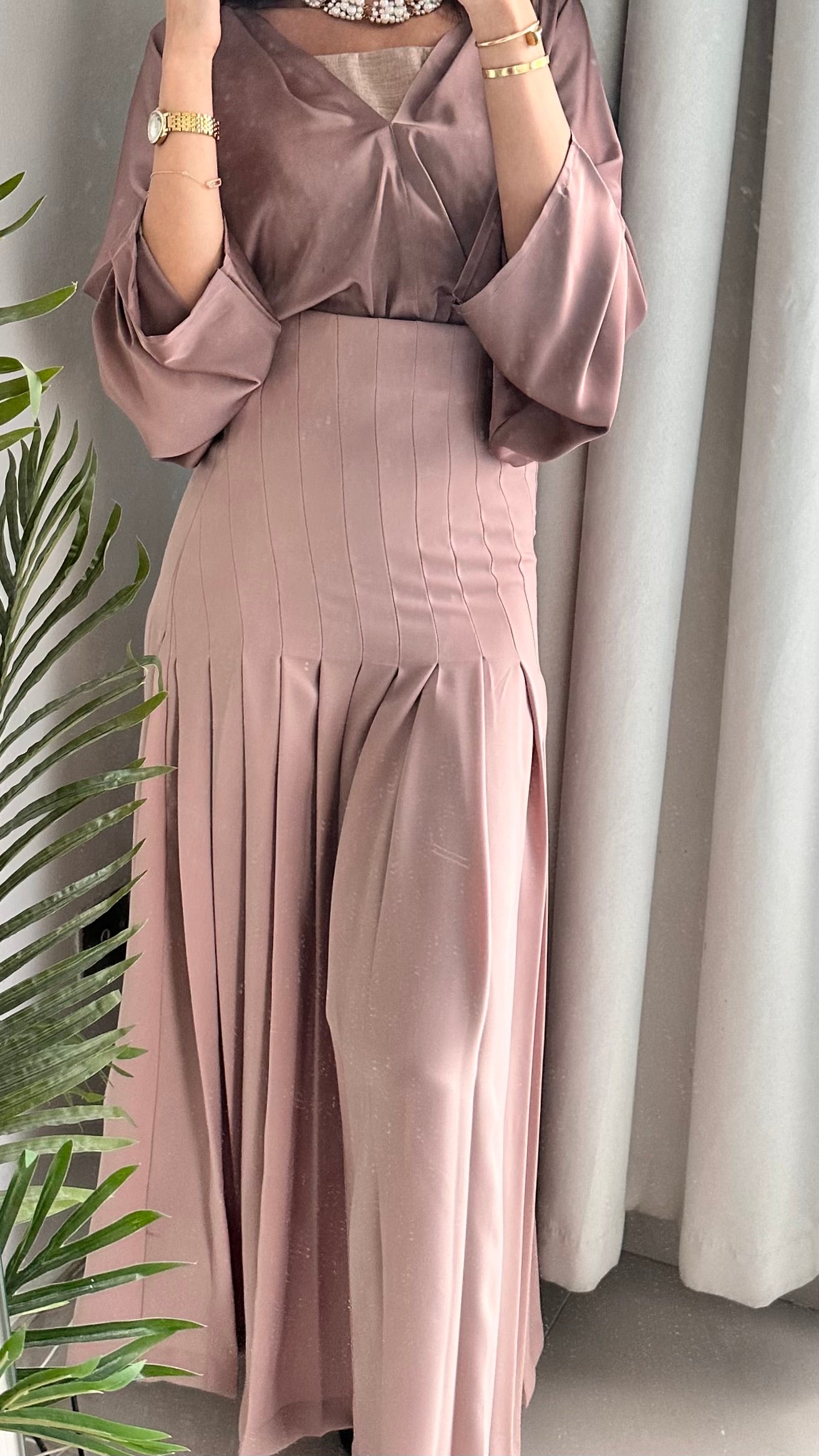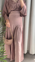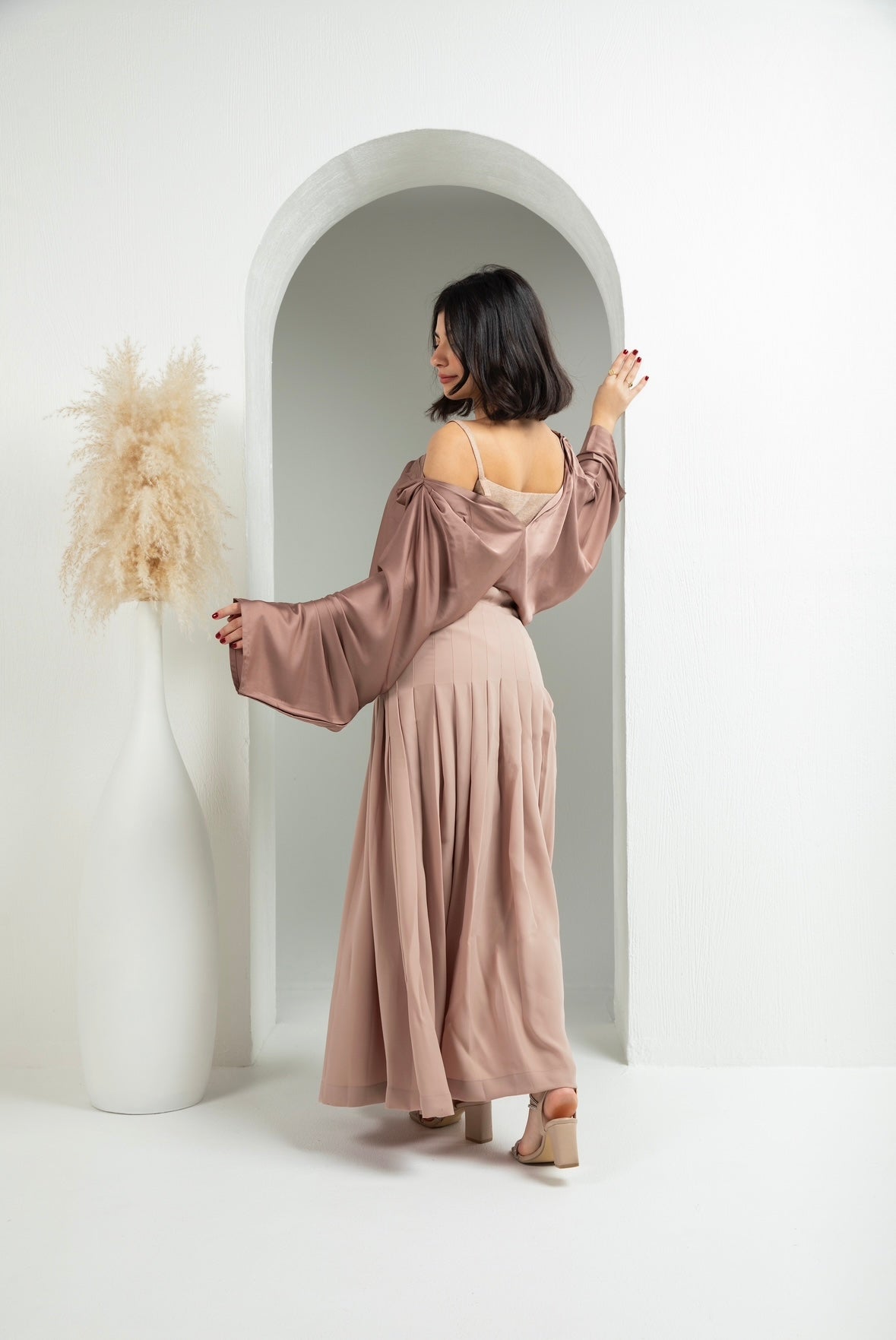 بدلة من تنورة بخصر مرتفع و وبلوزة باكمام عريضة