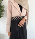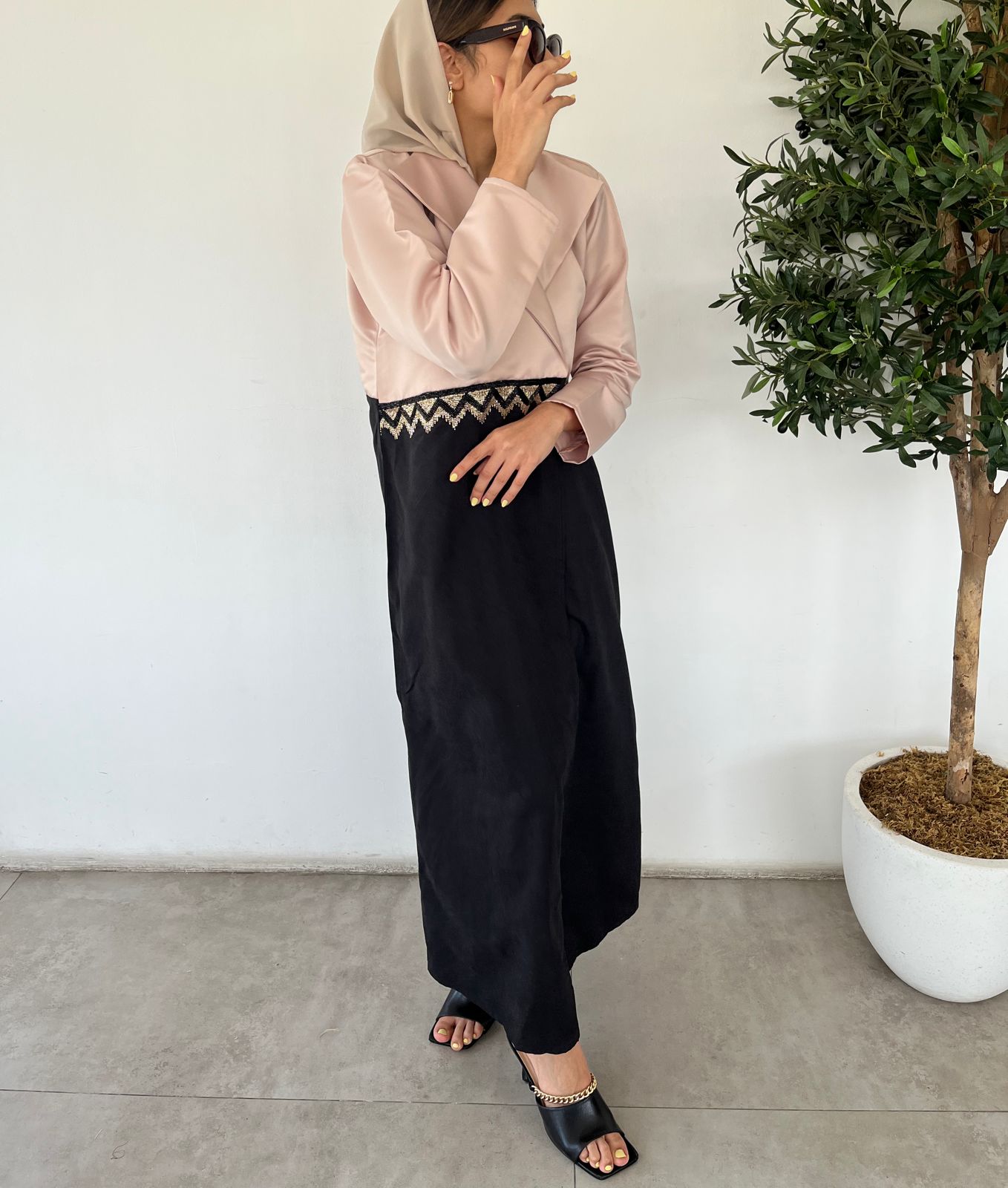 cross sides abaya with beaded crystals and stones on the waist, two types of material: crpe / soft material