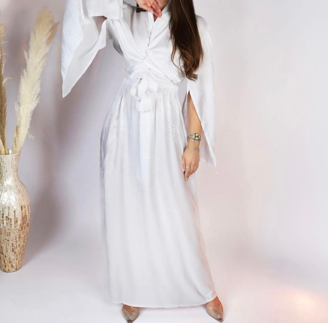 Korean soft  silk organza material, skirt and wrapping blouse with wide cuff