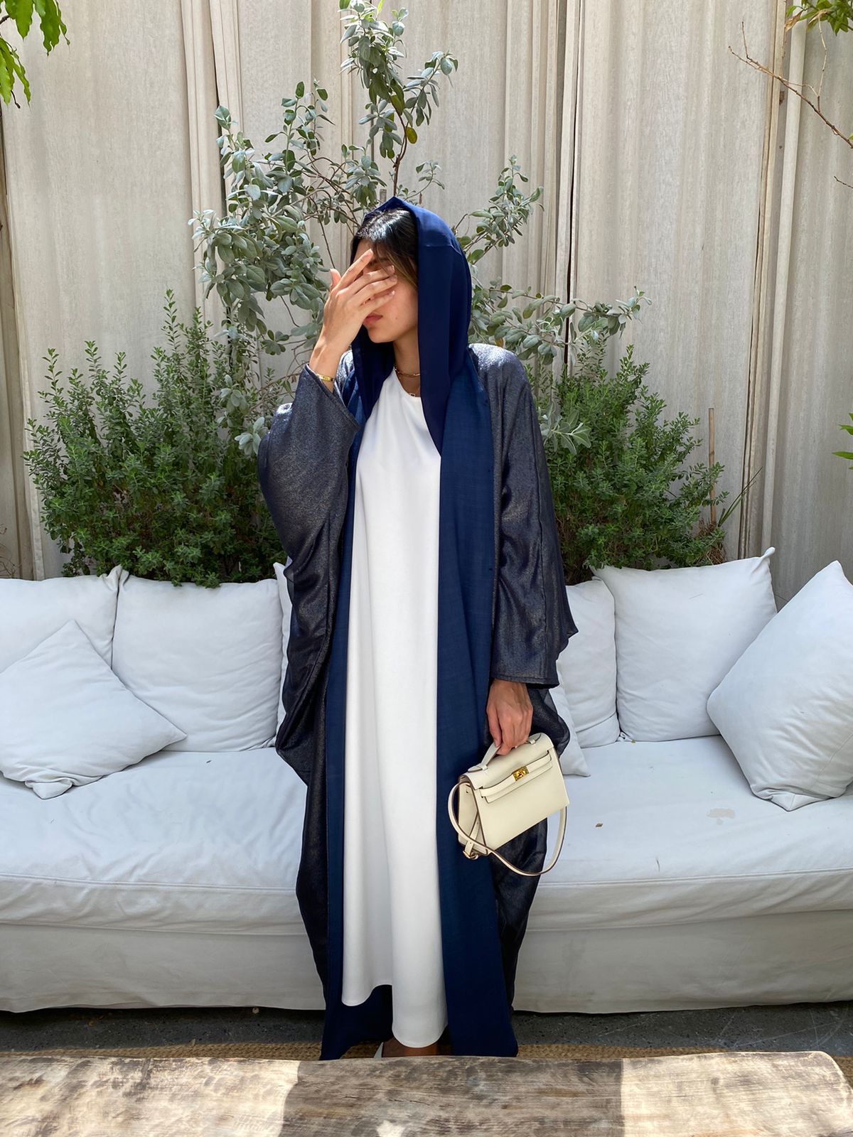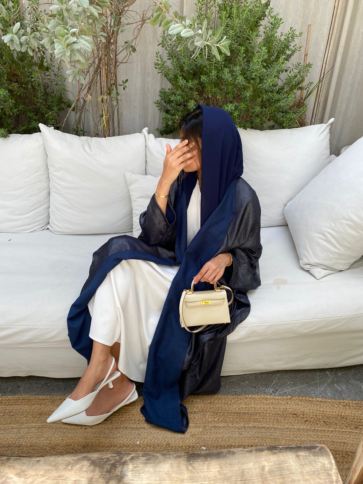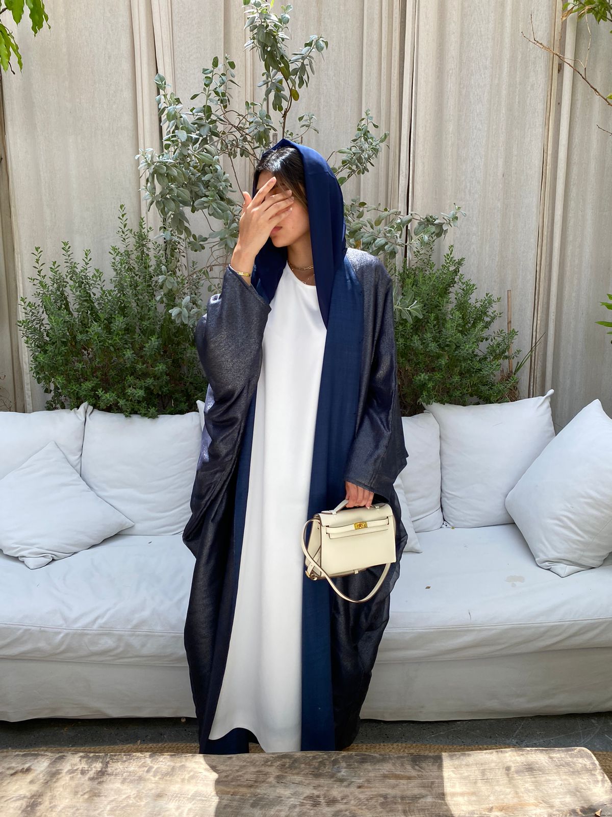 Bahraini cut abaya, doubled material: shiny material and cotton material